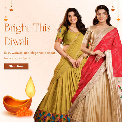 Explore our exquisite range of half sarees online, designed to make you say "wow." From the intricate artistry of Kalamkari half sarees to the glorious charm of Pattu half saree designs, our collection caters to every event on your calendar. Whether it's a wedding lehenga for women or a festive celebration, our traditional half-saree lehengas are sure to steal the spotlight.