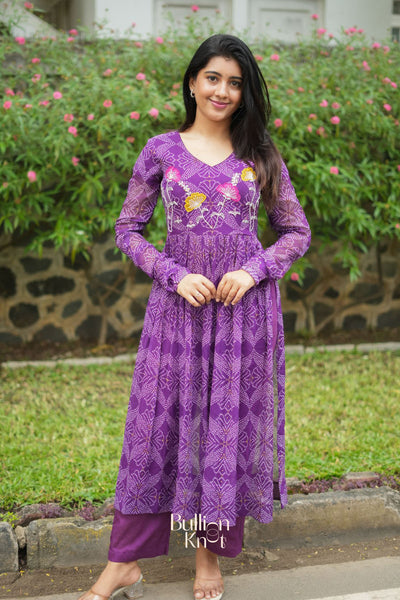 Panna Bandhej Kurta Set in Purple