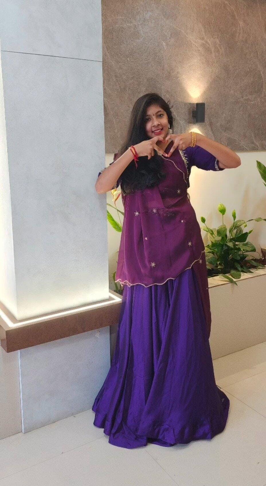 Why not wear this Ariana lehenga set for weddings, special occasions, or even in festival events! Introducing a gorgeous and bright wine and purple colour, made from soft and comfortable georgette fabric. For a rich, elegant look, the 12-metre flared skirt is simple, with handwork on the belt, making it appear more luxurious. In this lehenga set, the Madhubala neck features a pleated pattern, and the handwork blouse has a perfect colour combination of purple and wine. The wine-coloured dupatta has a beautiful scalloped pattern. Go with traditional jewellery for this lehenga set for an ethnic yet cultural vibe.