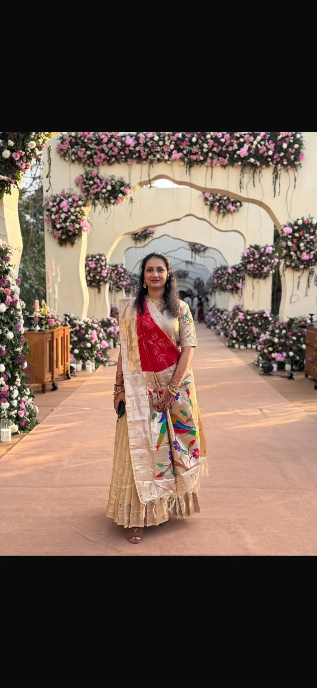 -Dola silk dupatta with bandhani & Paithani detailing—perfectly balancing tradition with elegance