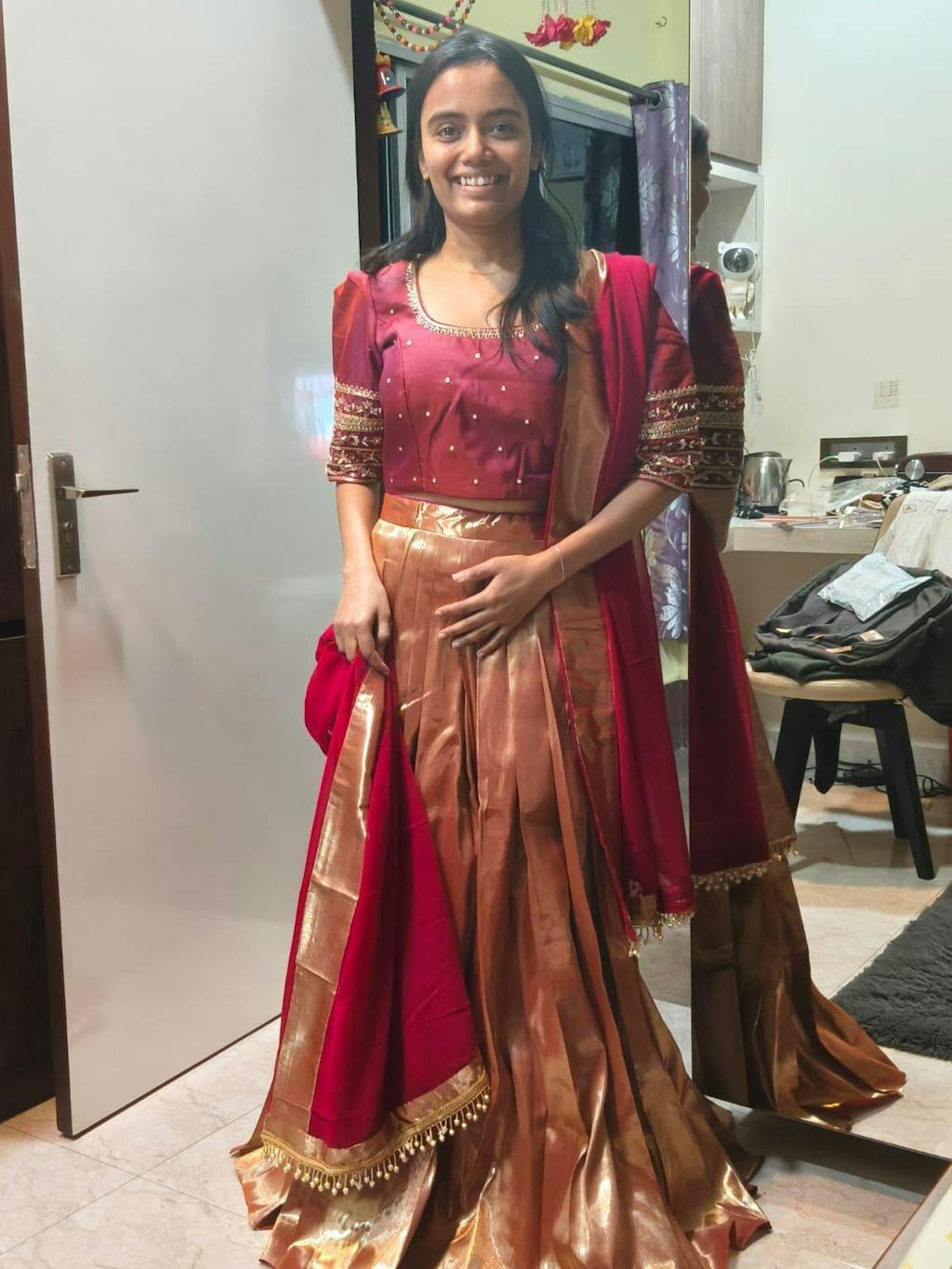 What You Will Receive:- 1 fully stitched skirt, 1 stitched blouse,1 Dupatta, 1 waist belt
