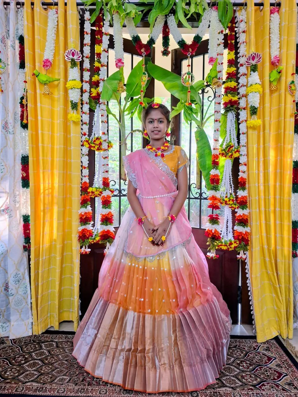What You Will Receive: 1 fully stitched skirt, 1 fully stitched blouse and 1 Dupatta Fabric: Organza, 2.50 meters of organza Dupatta Blouse: 8 Inch Front Neck depth, 11-inch back neck depth, 4 Inch Sleeve Length Padding: Yes Skirt: 42 inches in length with a Satin line Wash Care: Dry Wash Note: Please refer to the size chart for accurate measurement. Draped in opulence, our Silver Elegance Tyohar Lehenga Set is a masterpiece that exudes timeless charm and luxury. Crafted with meticulous attention to detail, the lehenga is a work of art. Its base is adorned with intricate mirrorwork, creating a mesmerizing play of reflections as you move. The lehenga's voluminous flair and intricate zari border add an extra layer of grandeur. The blouse is designed with a modern twist, perfectly combining tradition and contemporary style.