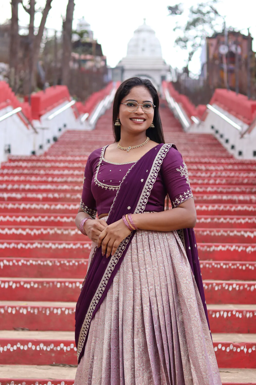 ✨ Look 2: Transform the same saree into a dupatta, paired with the lehenga and blouse for a regal festive look.
