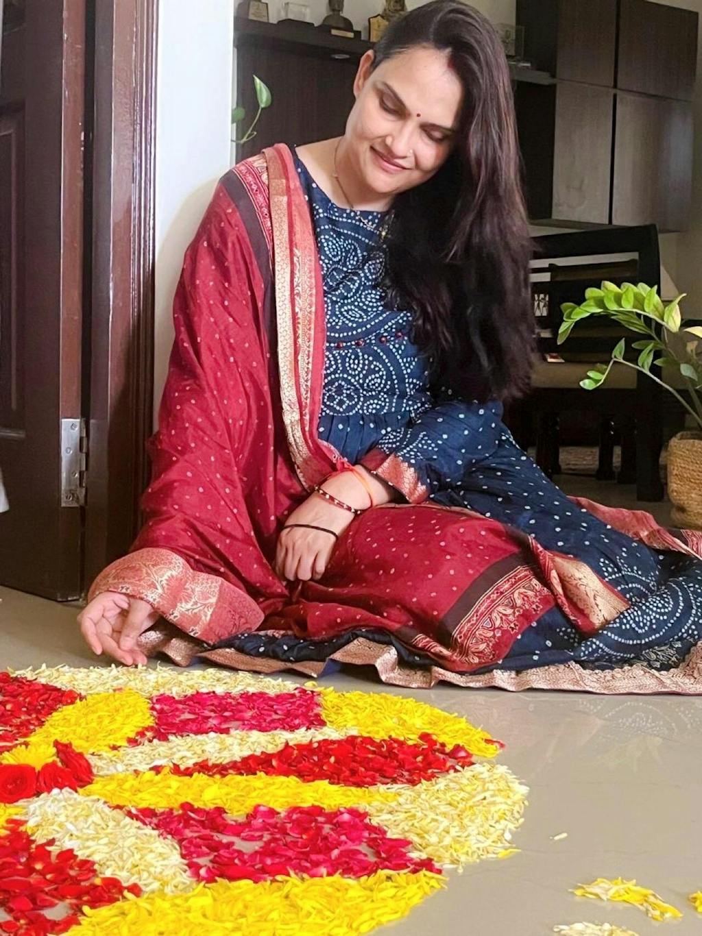 Shayla Bandhani Navy Blue Anarkali Suit Set with Ajarakh Dupatta
